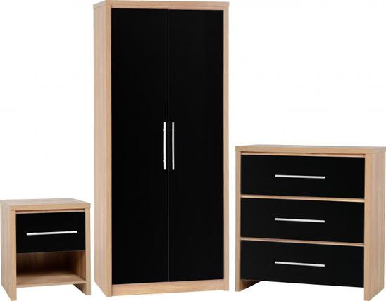 Light oak effect with grey high gloss, Light oak effect with black high gloss, Light oak effect with white high gloss,